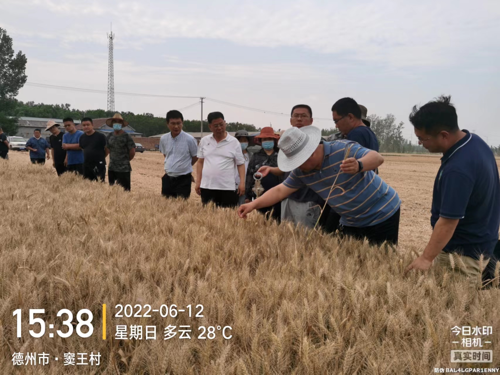6月12日,在德州市“吨半粮”核心区小麦机收实打现场,山东省农业厅组织我省小麦高产竞赛实打验收专家,对我公司德州禹城房寺镇窦王村种粮大户韩东升200亩小麦示范基地进行实打测产。此次实打面积为3.34亩,经收割、脱粒、去杂、水分测定、称重等多道工序后,专家组将所有数据汇总,去除水分含量28.7%、杂质含量1.54%,折合亩产量703.66公斤