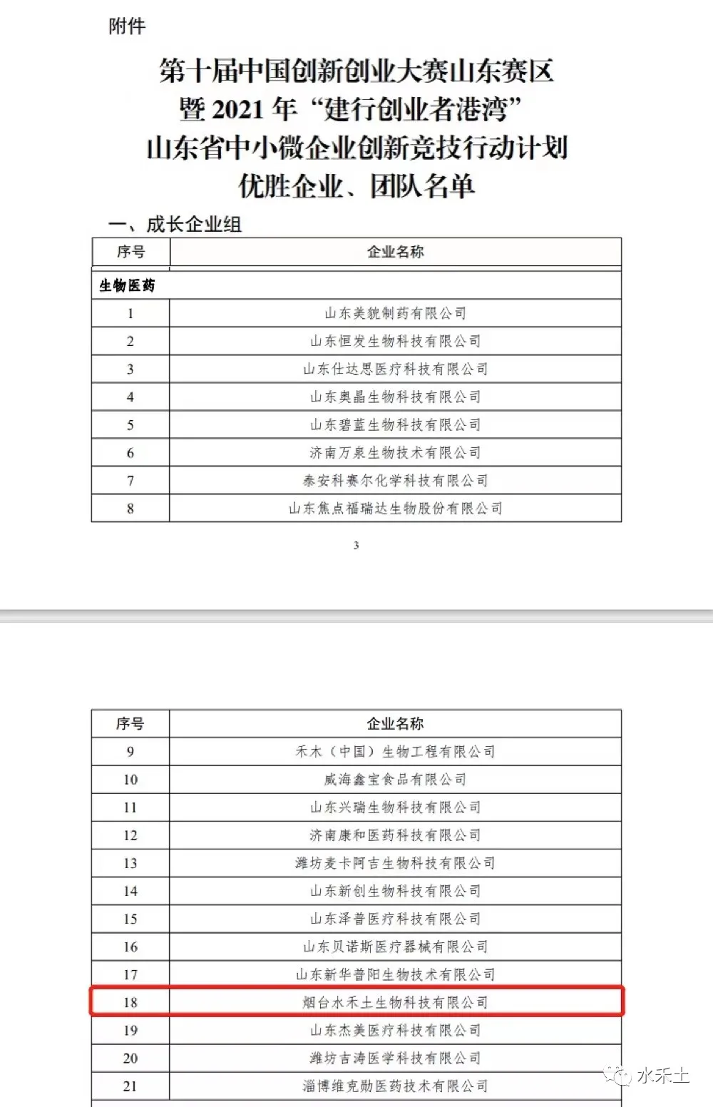 烟台市参赛企业中唯一一家荣获第十届中国创新创业大赛生物医药领域优胜企业