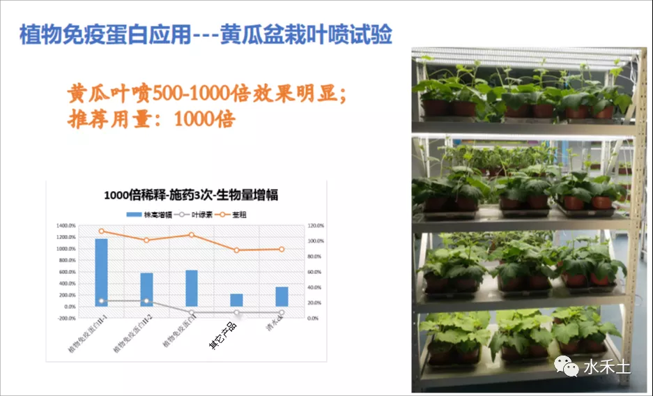 水禾土植物免疫蛋白喷施黄瓜,对黄瓜叶绿素含量、茎杆粗度、株高,均有不同程度的增幅表现。