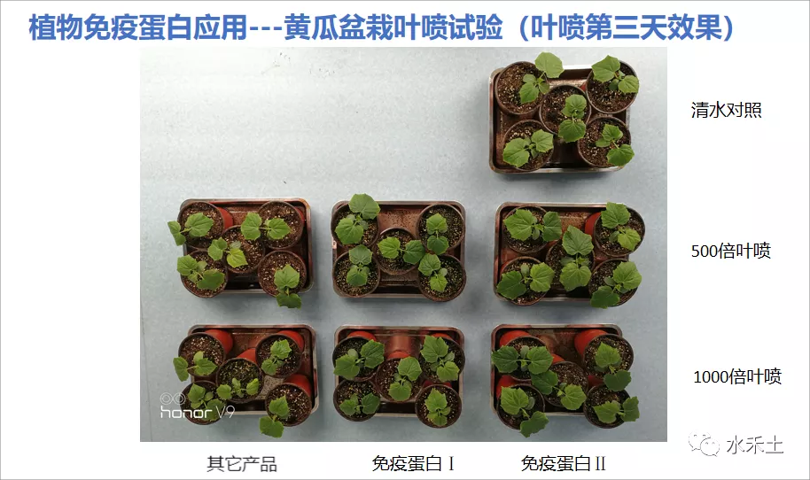 水禾土植物免疫蛋白与市场中其它同类型产品效果对比图。